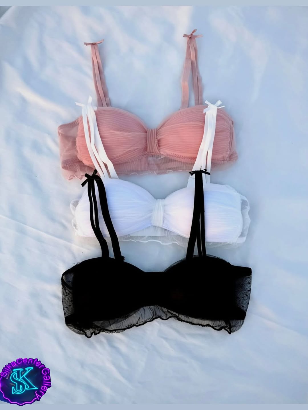 ست عروس پاپیونی کاپ اروپایی دخترونه بدون فنر کاپ دارد مشکی صورتی سفید سایز ۸۵